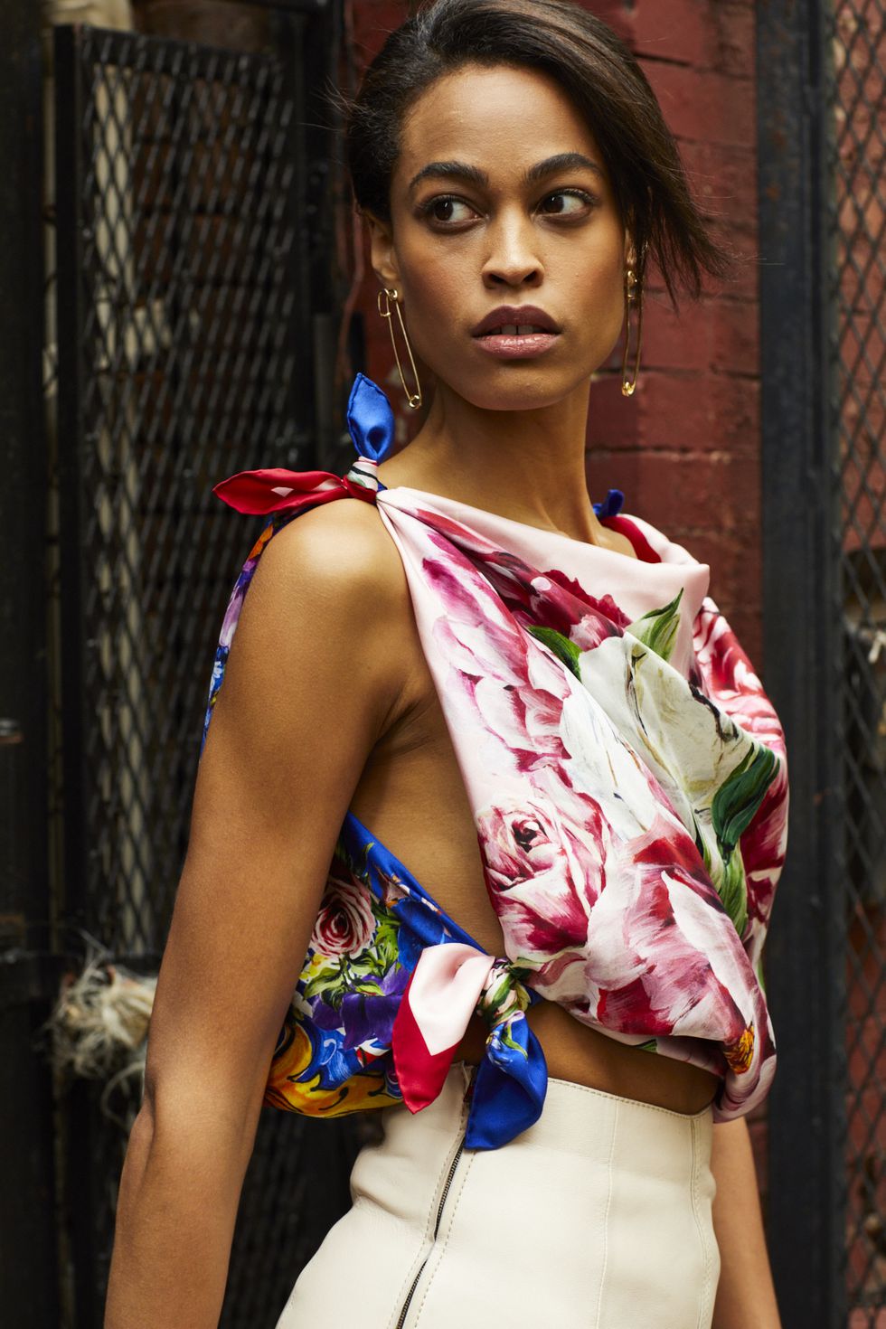 Credits: Dolce & Gabbana scarves, $345 each; Fendi skirt, $2,900; Jennifer Fisher earrings, $185; Hair and makeup: Mia Santiago at See Management |