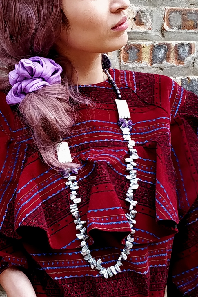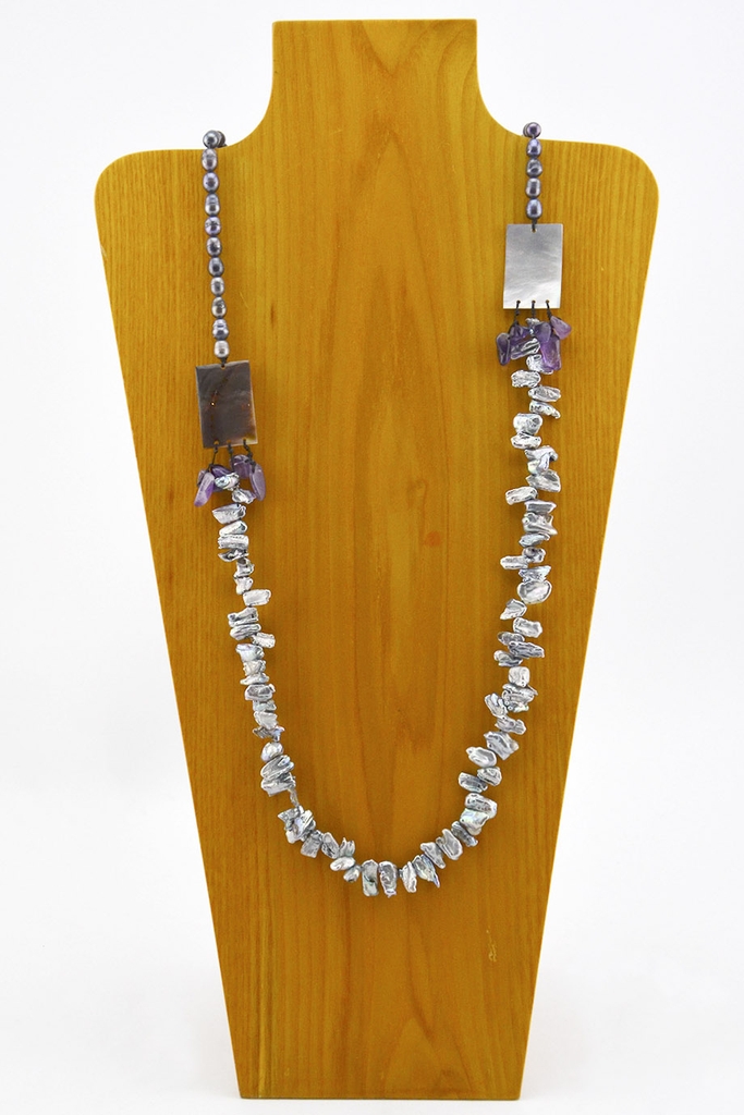 86cm, pearl, amethyst, mother of pearl, silver 999 lobster clasp
