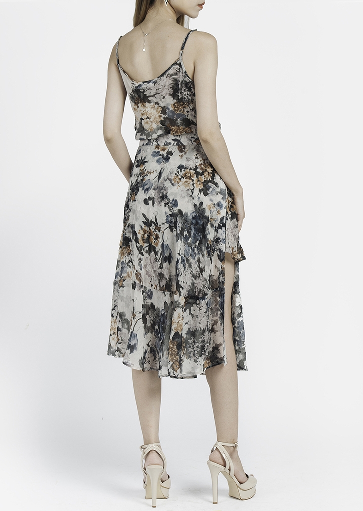 Chân váy cuốn xòe cài khoen đai mặc kết hợp đầm sơ mi in hoa be- nâu- trắng- Alice Suit Wrap Skirt/ GBB