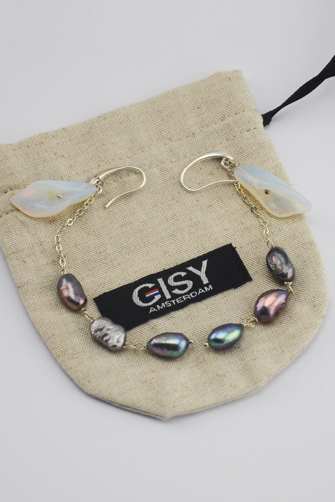 moonstone, pearl, silver chain, silver hook
