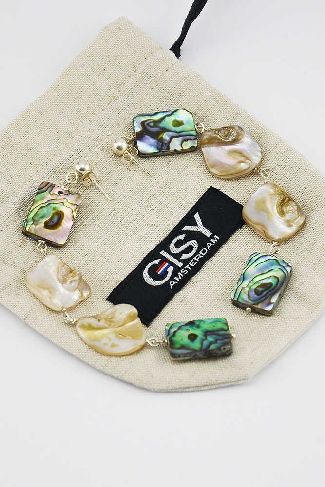 11 cm, mother of pearl, silver wire & silver stud