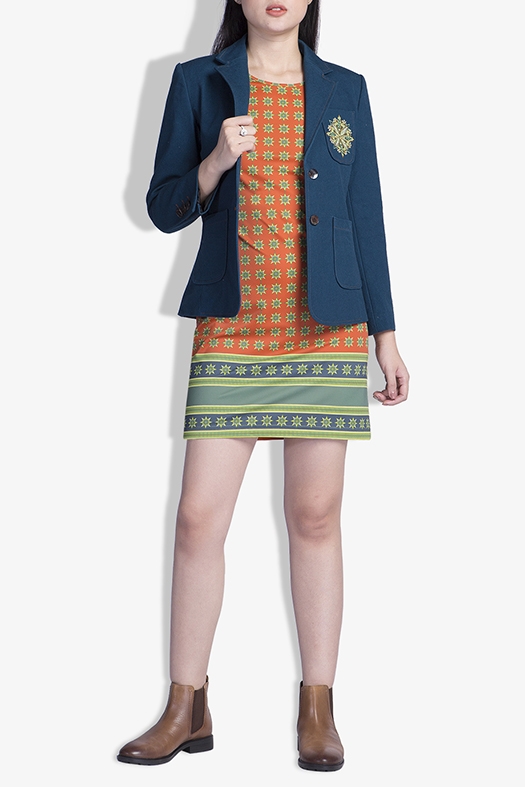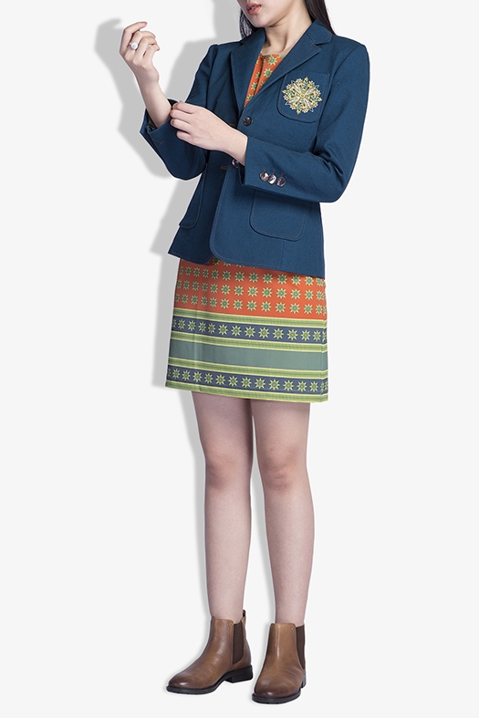 Áo blazer hai khuy thêu mandala Mộc- Brynn Two Button Mandala Embroidered Blazer/ Prussian Blue