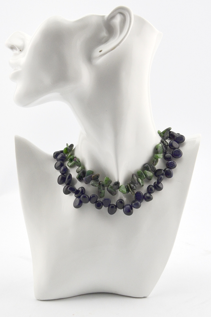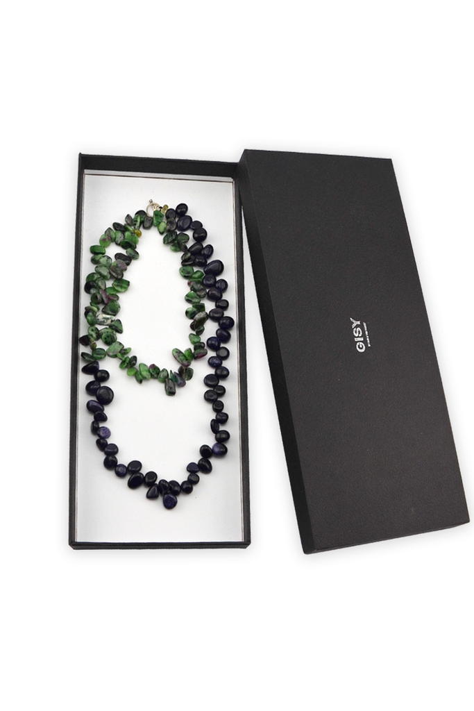 86cm, green ruby, navy gold stone, silver 999 toggle closure.