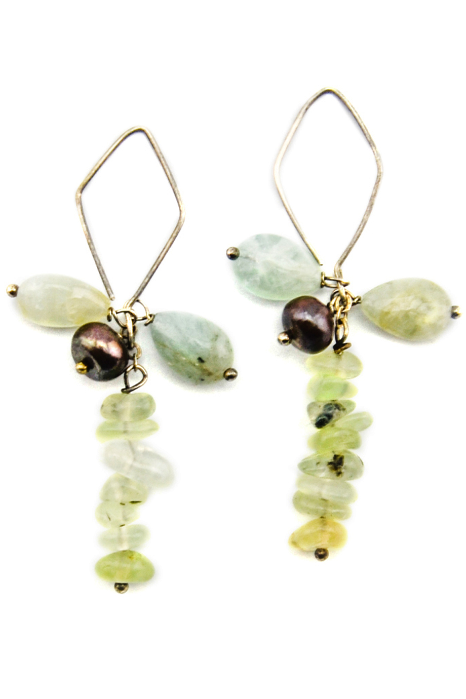 flourite, multicolor pearl, silver chain, silver hook