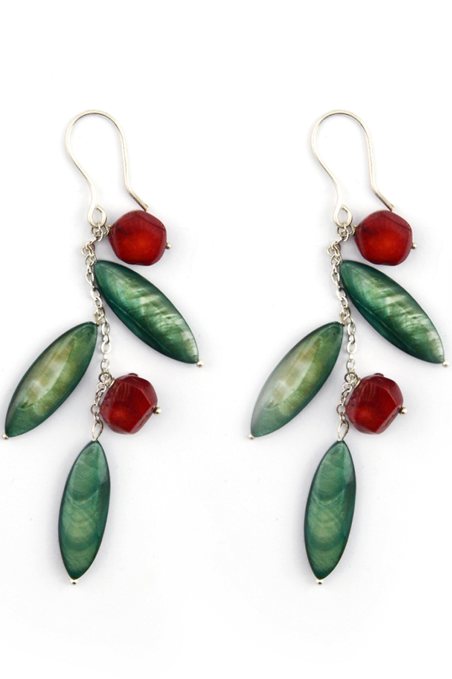 drop 6.8 cm, mother of pearl, coral, silver wire, silver stud pin, 10 gr