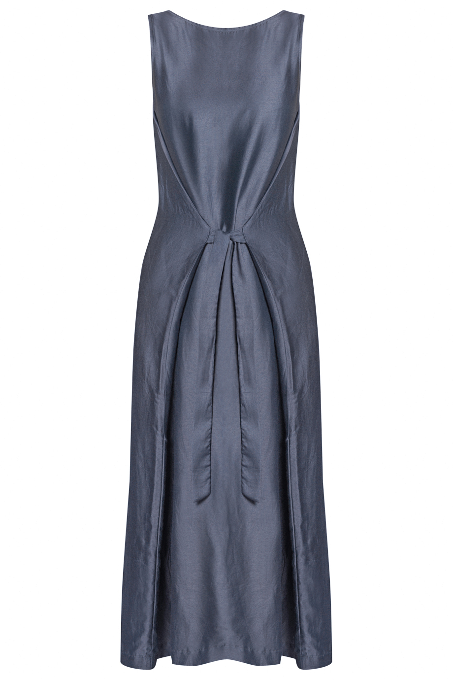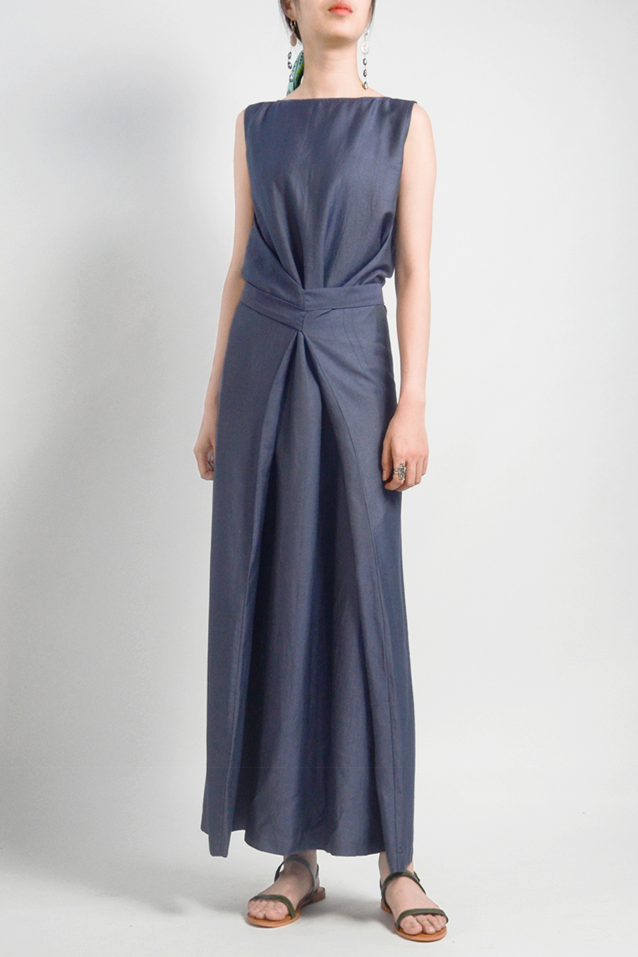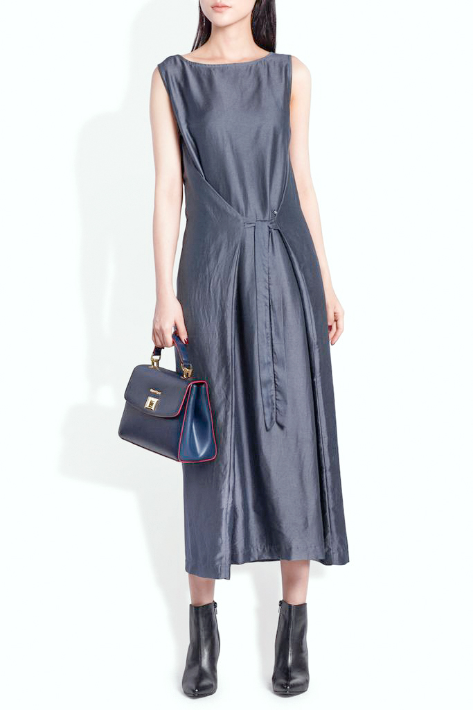 V-neck Silk Bias Cut Ankle Slip Dress/ Navy