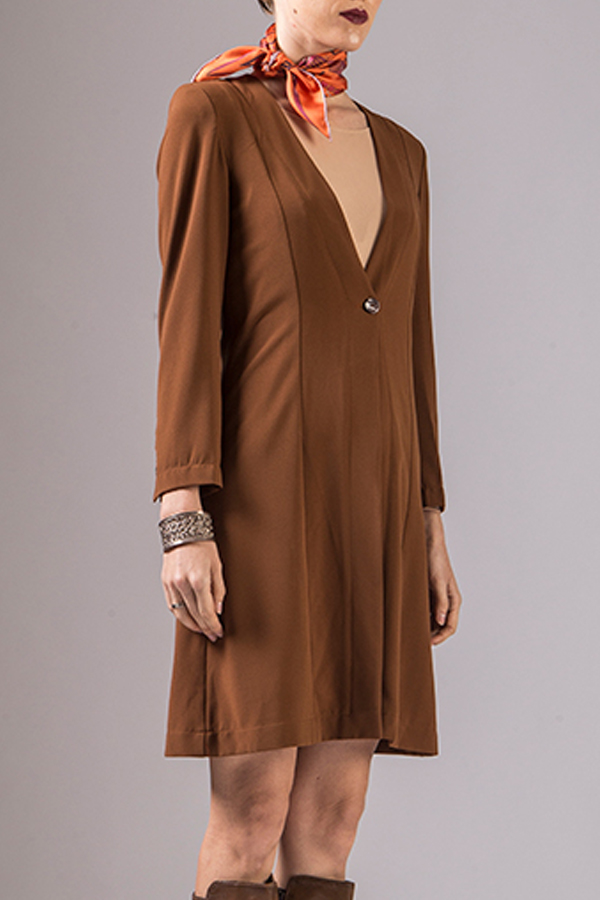V-neck Silk Bias Cut Slip Dress/ Mustard