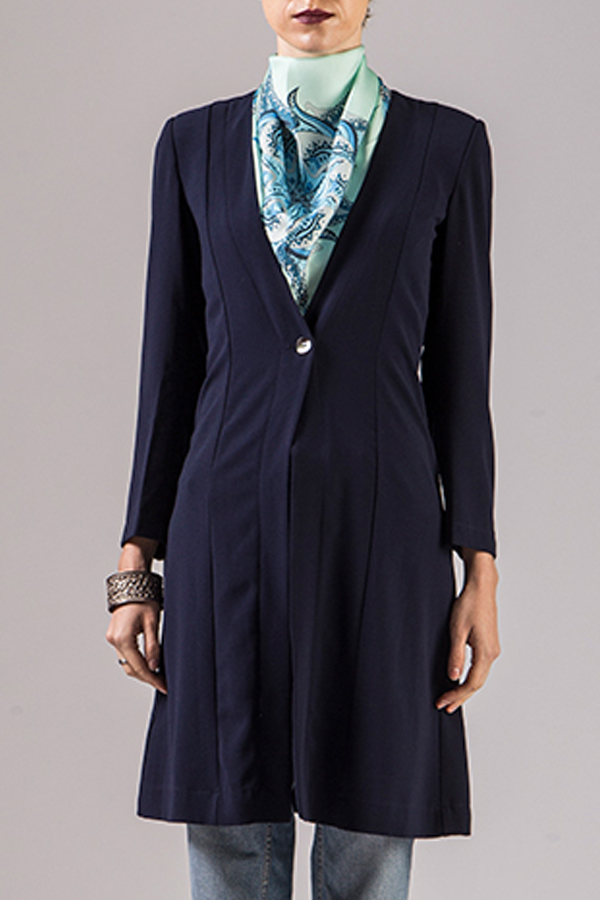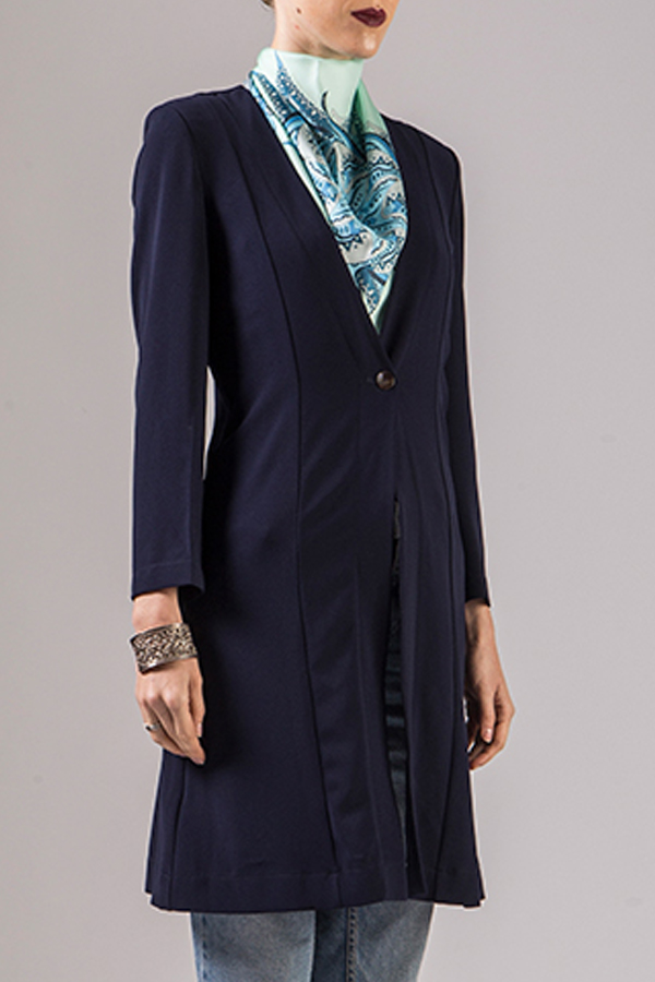 V-neck Silk Bias Cut Ankle Slip Dress/ Navy