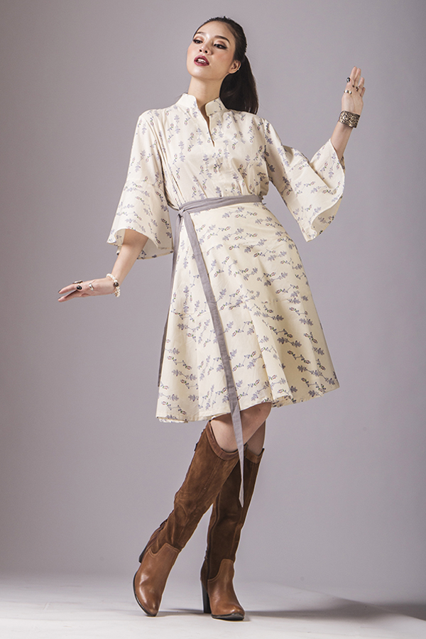 Đầm dài tay Estrella Waisted Dress/ Beige