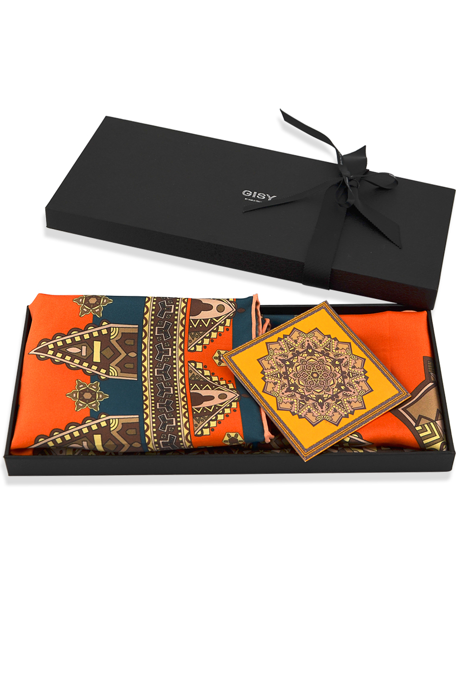 This scarf is made from premium 100% silk twill 16mm with top quality printing job and hand-rolled hem, but the most special thing about it is the pattern: Mandala EARTH (designed by us in 2017, belongs to series 5 Oriental World elements) surrounded with complicated layers of border, gives this scarf...