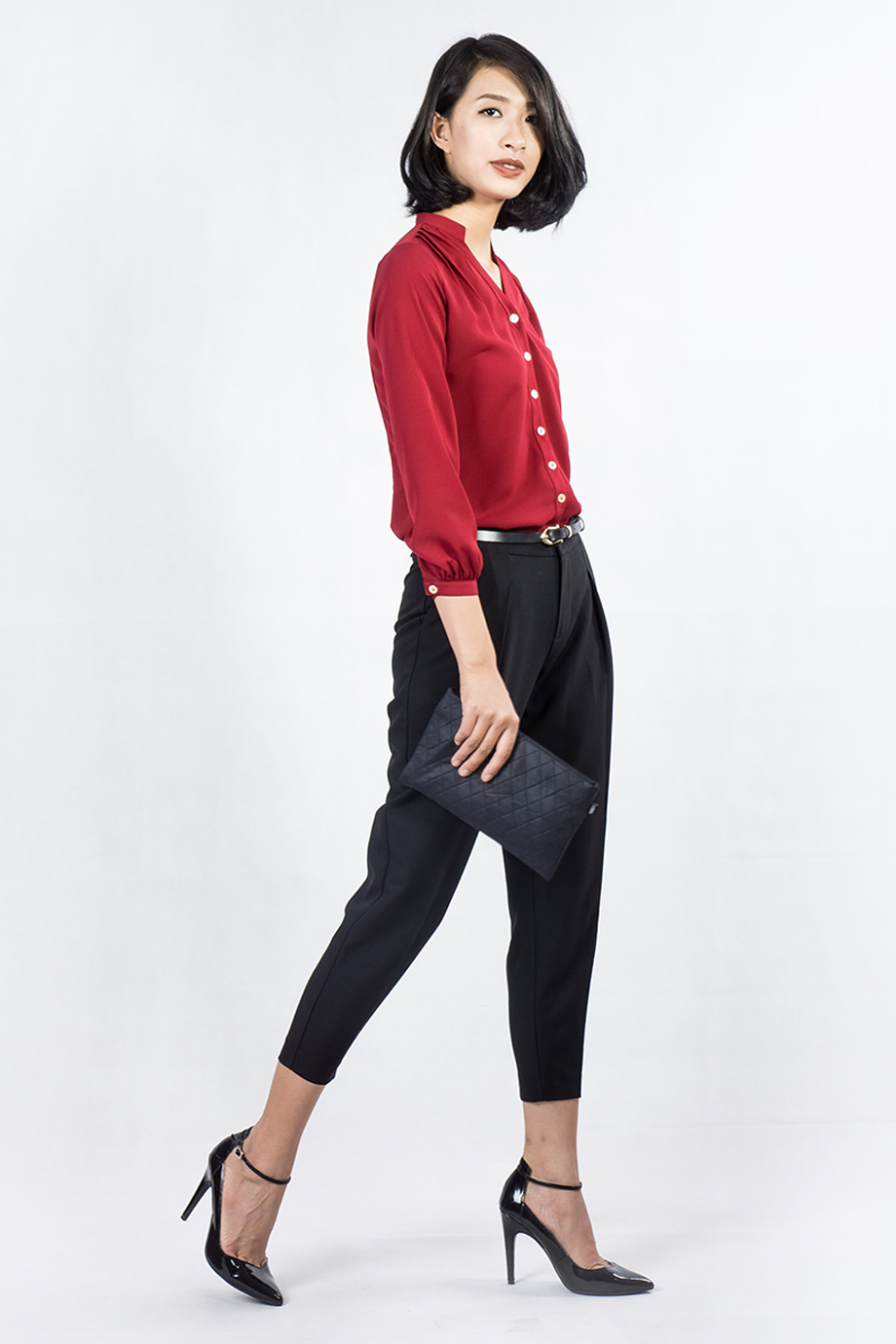 100% viscose, habotai weave - Kiểu dáng kinh điển được yêu thích cả thập kỷ nay của thương hiệu SANSAN. Một chiếc áo không thể thiếu trong tủ đồ công sở. - Dẽ dàng kết hợp với quần ống suông mềm, quần ống bom hoặc các loại chân váy.