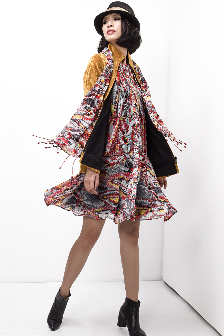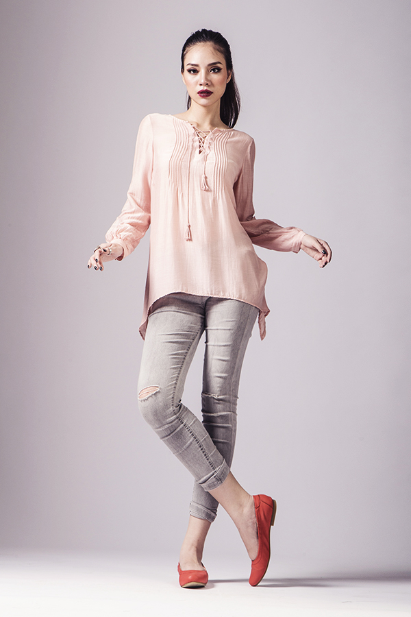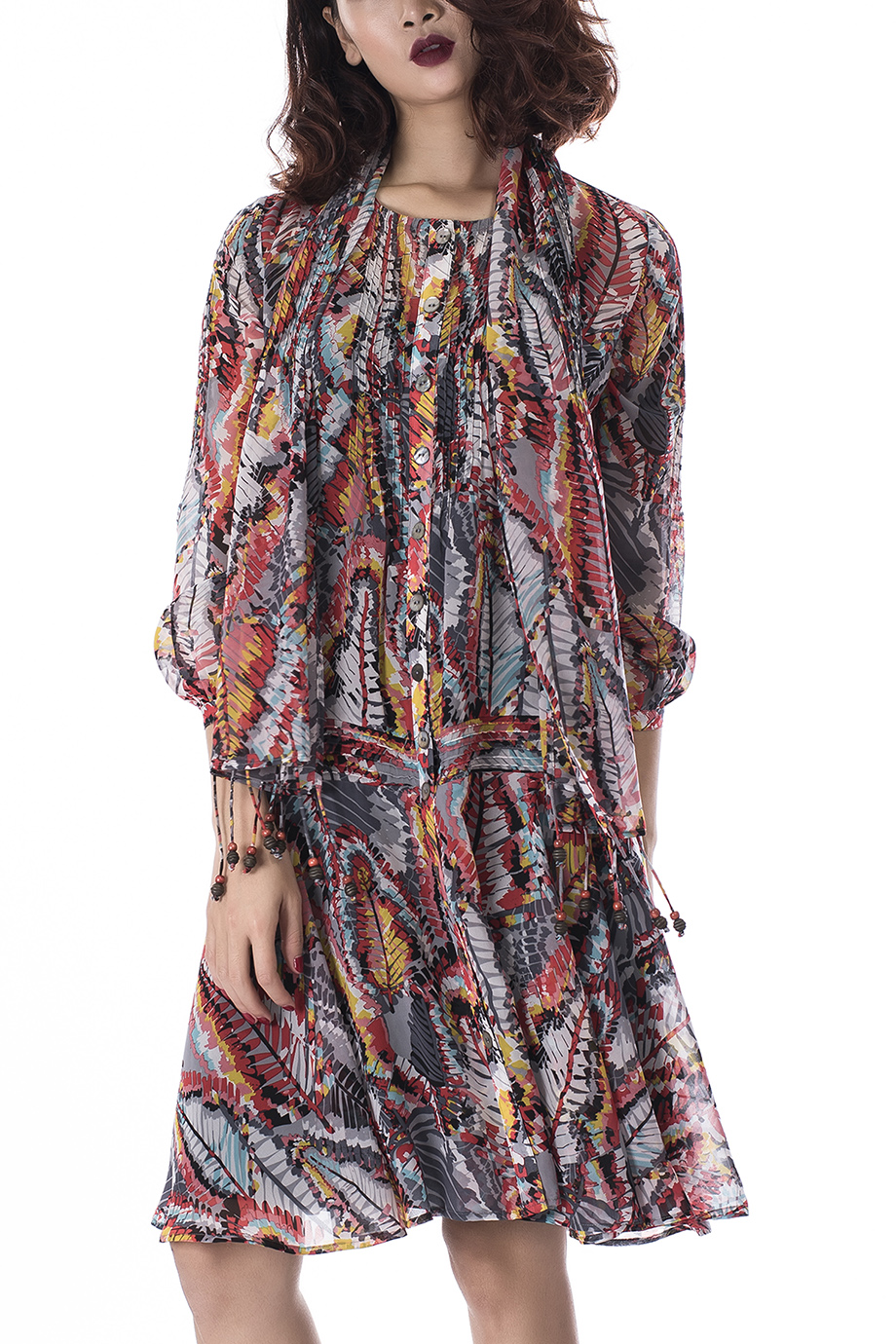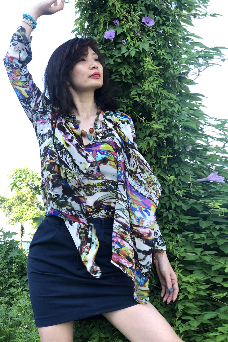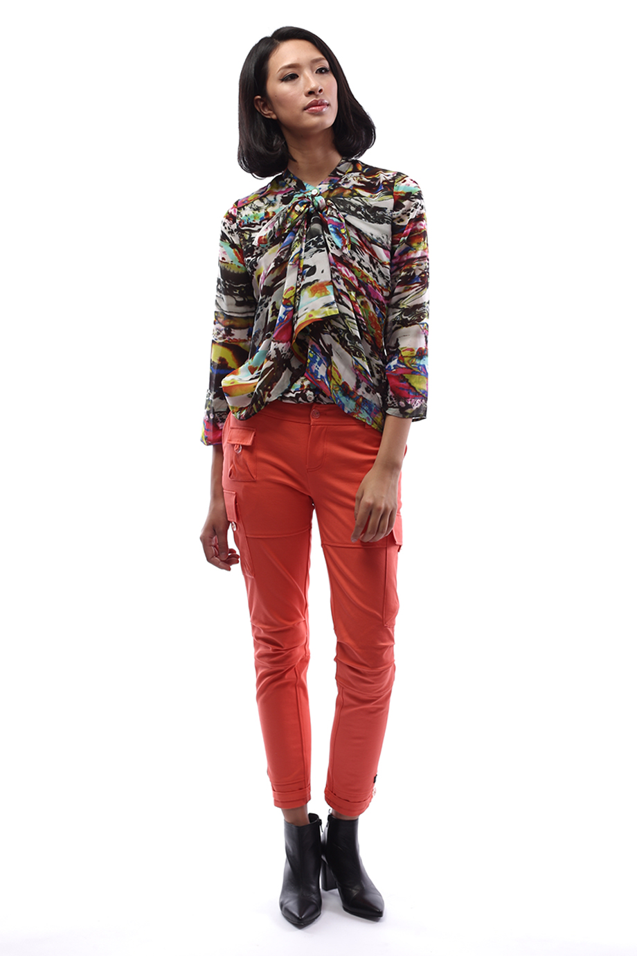 Vita Kimono Sleeves Silk Blouse/ Fire