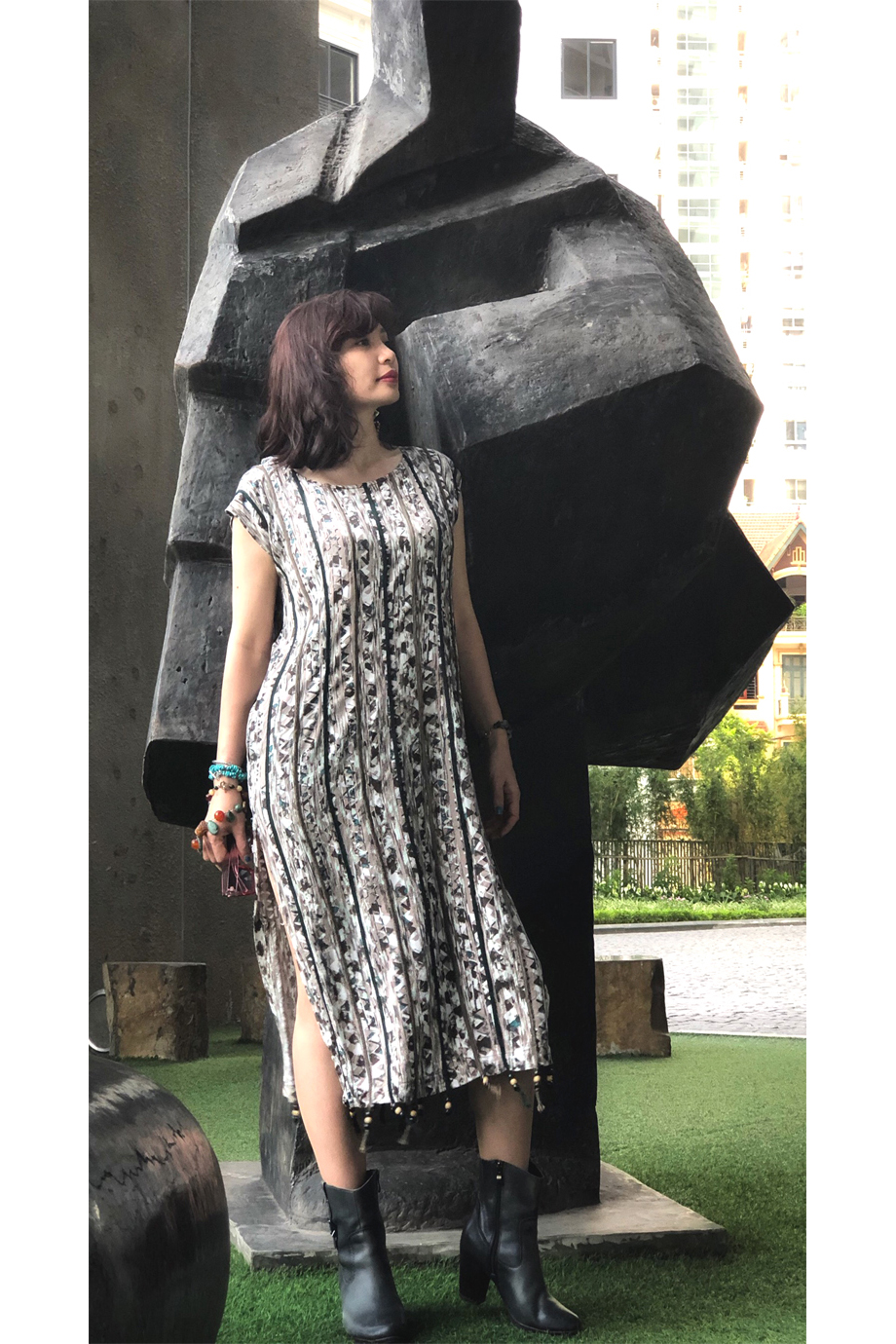 Đầm Bamboo Long-sleeved Maxi Dress/ BW