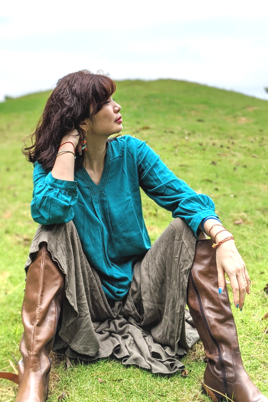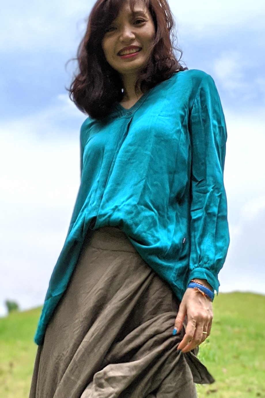 Vita Kimono Sleeves Silk Blouse/ Indigo