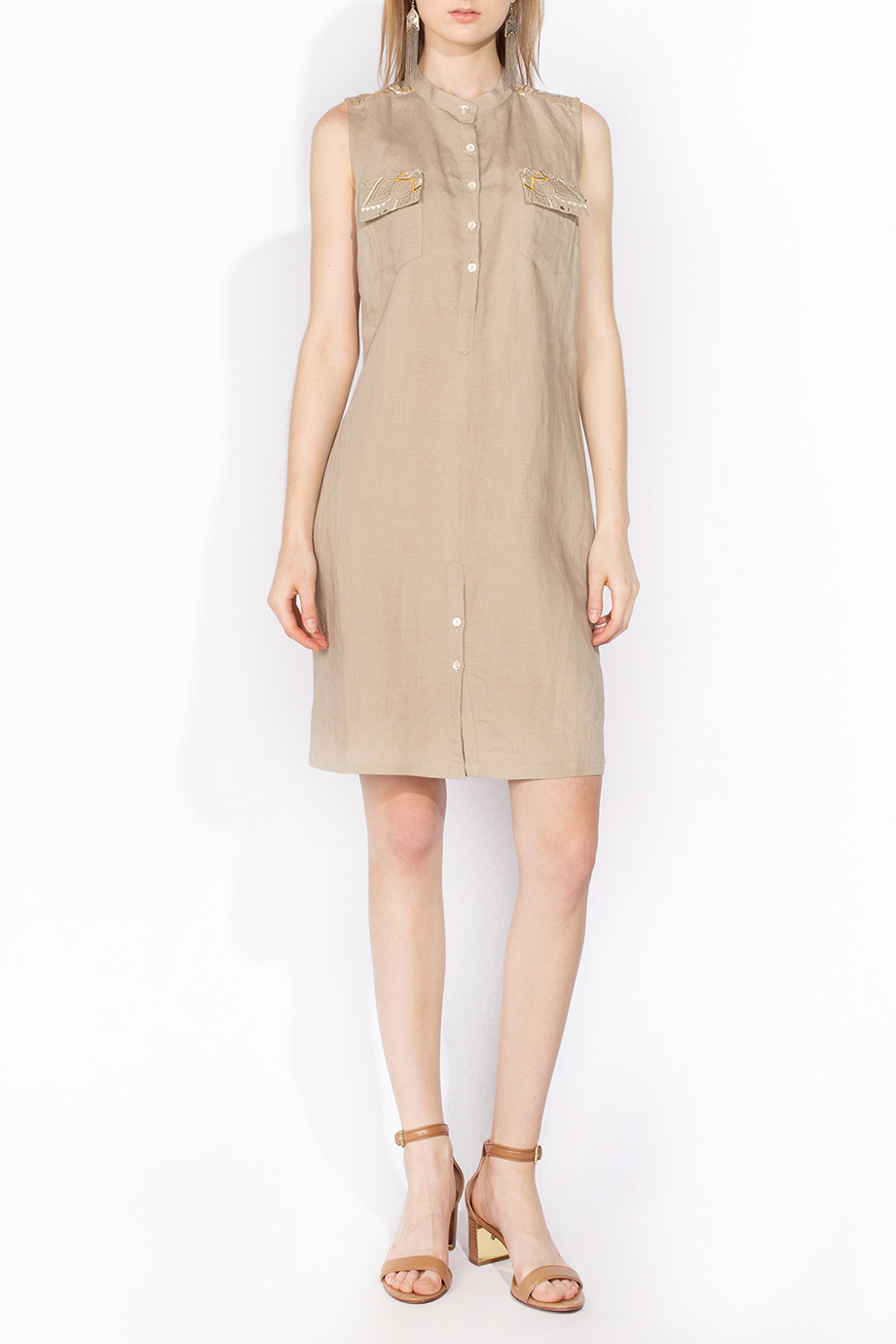 Đầm dài tay Estrella Waisted Dress/ Beige