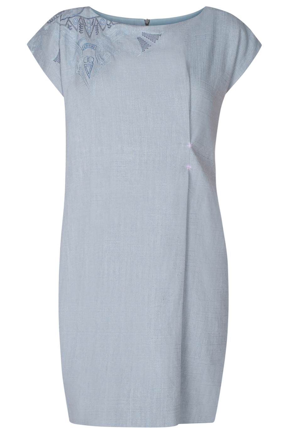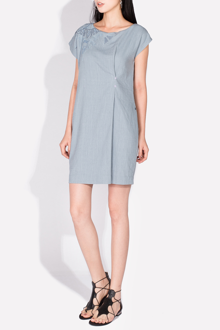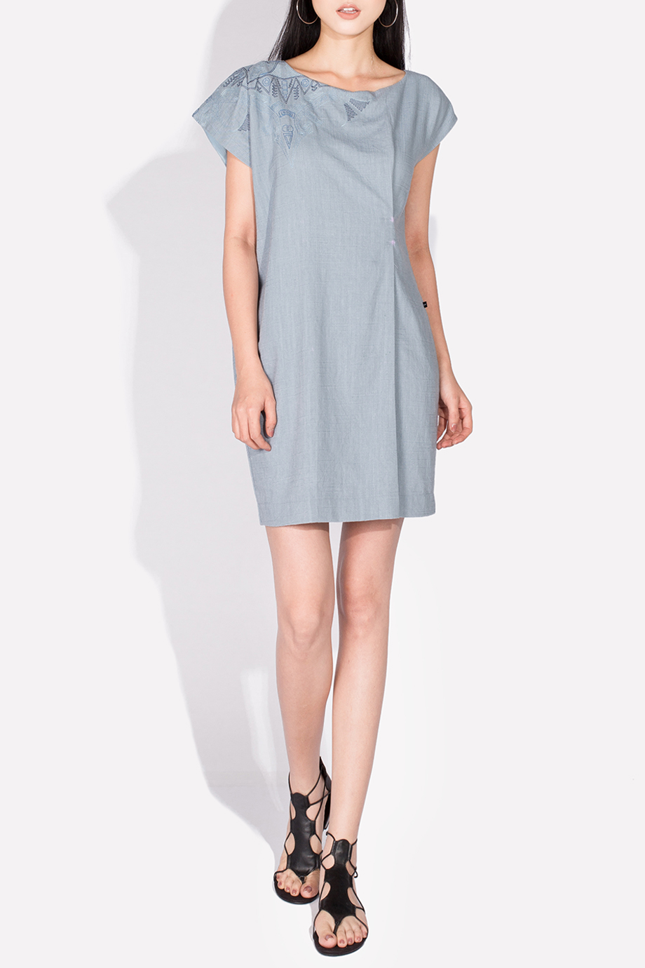 Vita Asymmetric Embroidered Dress/ Ice Blue