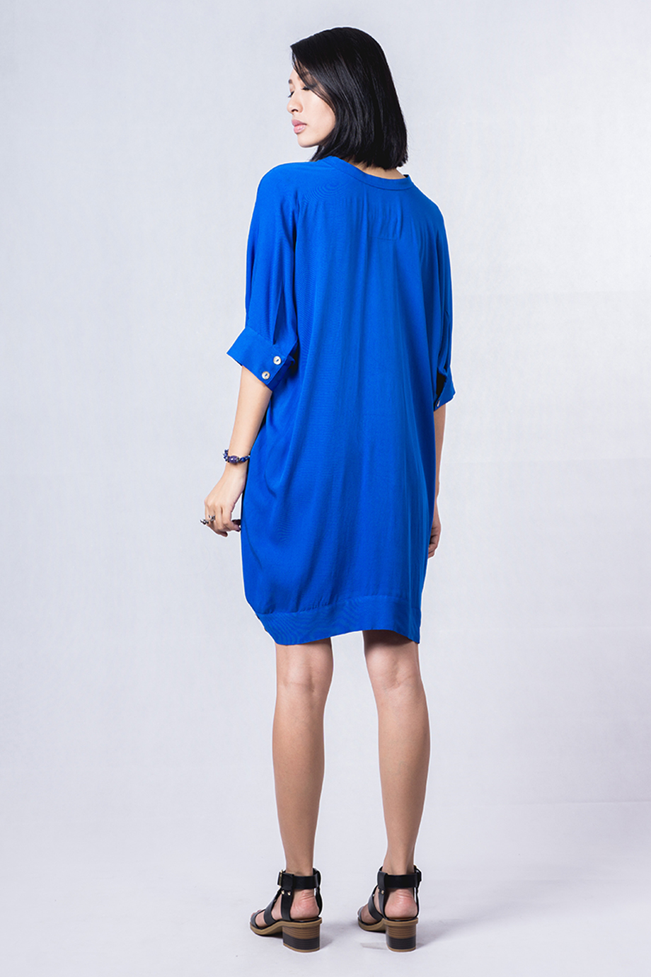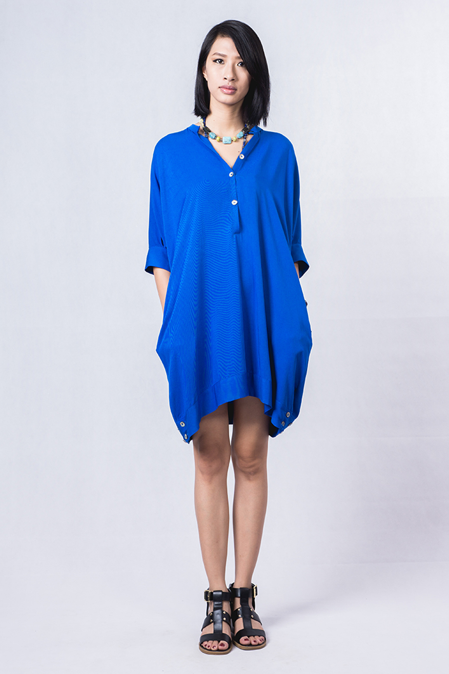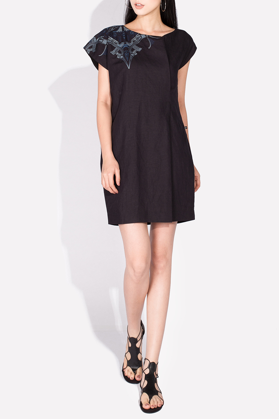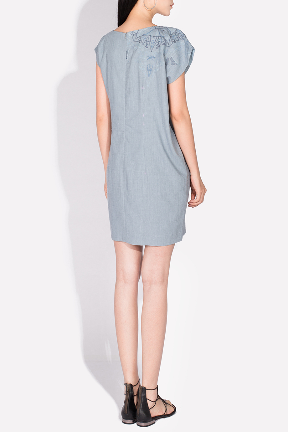 Vita Asymmetric Embroidered Dress/ Ice Blue
