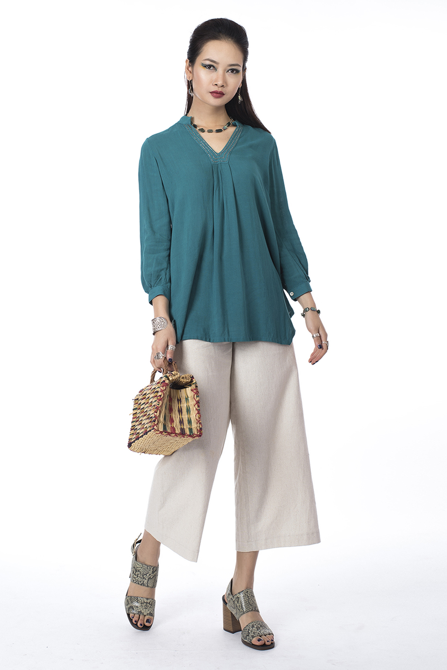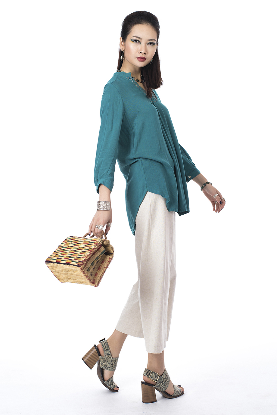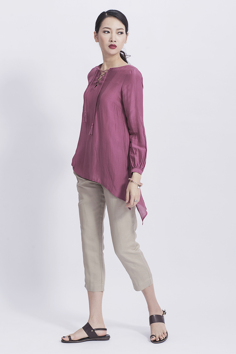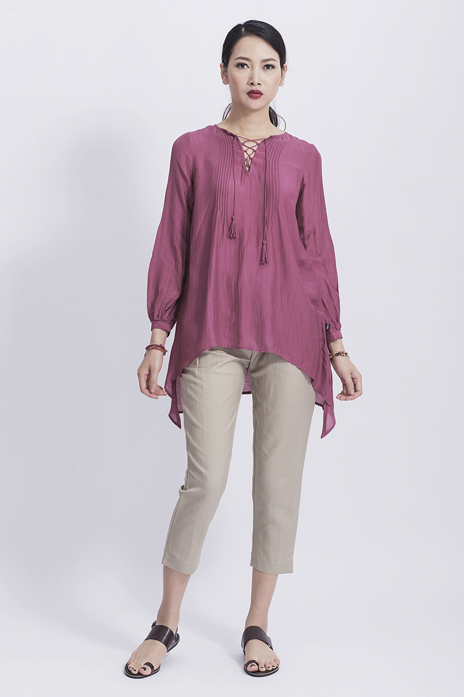 Áo lụa tơ tằm 100% Iris Silk Blouse/ Black