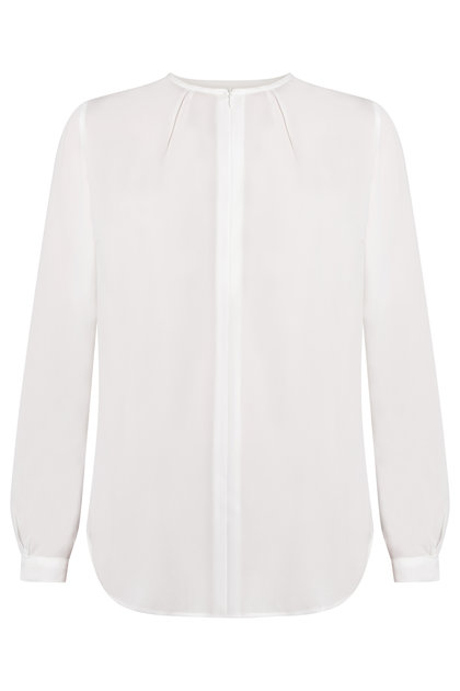 100% viscose, habotai weave - Khóa chìm ngắn phía trước cổ, cho phép đóng kín cổ áo hoặc mở cổ tới ngang ngực tùy ý. Chui đầu từ dưới lên khi mặc. - Dễ dàng kết hợp với mọi loại quần suông và chân váy.