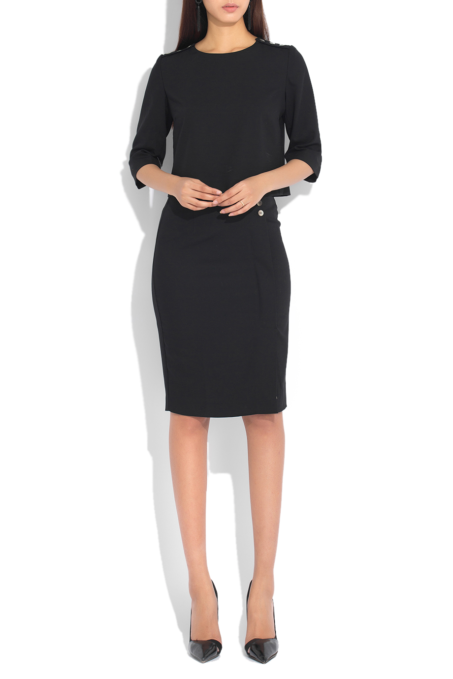 Grace 3/4 Sleeves Crop Top/ Black