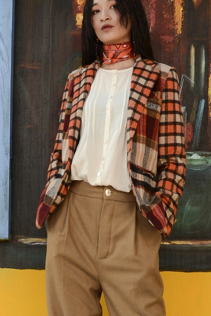 Áo blazer dạ một khuy- Colleen One Button Blazer/ Orange-Black Block