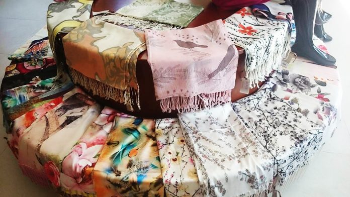 Khăn lụa là sản phẩm được yêu thích nhất, mỗi chiếc khăn được bán với giá khoảng 100$/ 1 chiếc được sản xuất sẵn, ngoài ra bạn có thể đặt may theo yêu cầu.
