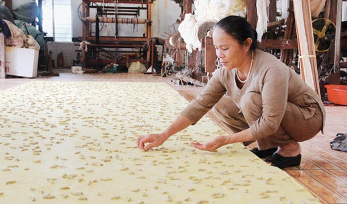 Đem tấm thảm tơ ấy đi tẩy theo kỹ thuật truyền thống sẽ được một tấm chăn tơ mềm xốp như mây trời mùa hạ, mát như gió núi ban mai. Bà Thuận cho biết, tất cả kỹ thuật, tinh túy nghề nghiệp chính là ở công đoạn tẩy, bởi nếu không biết cách làm, thì tấm thảm tơ kia dù giá trị mấy cũng chỉ là đồ bỏ đi mà thôi.