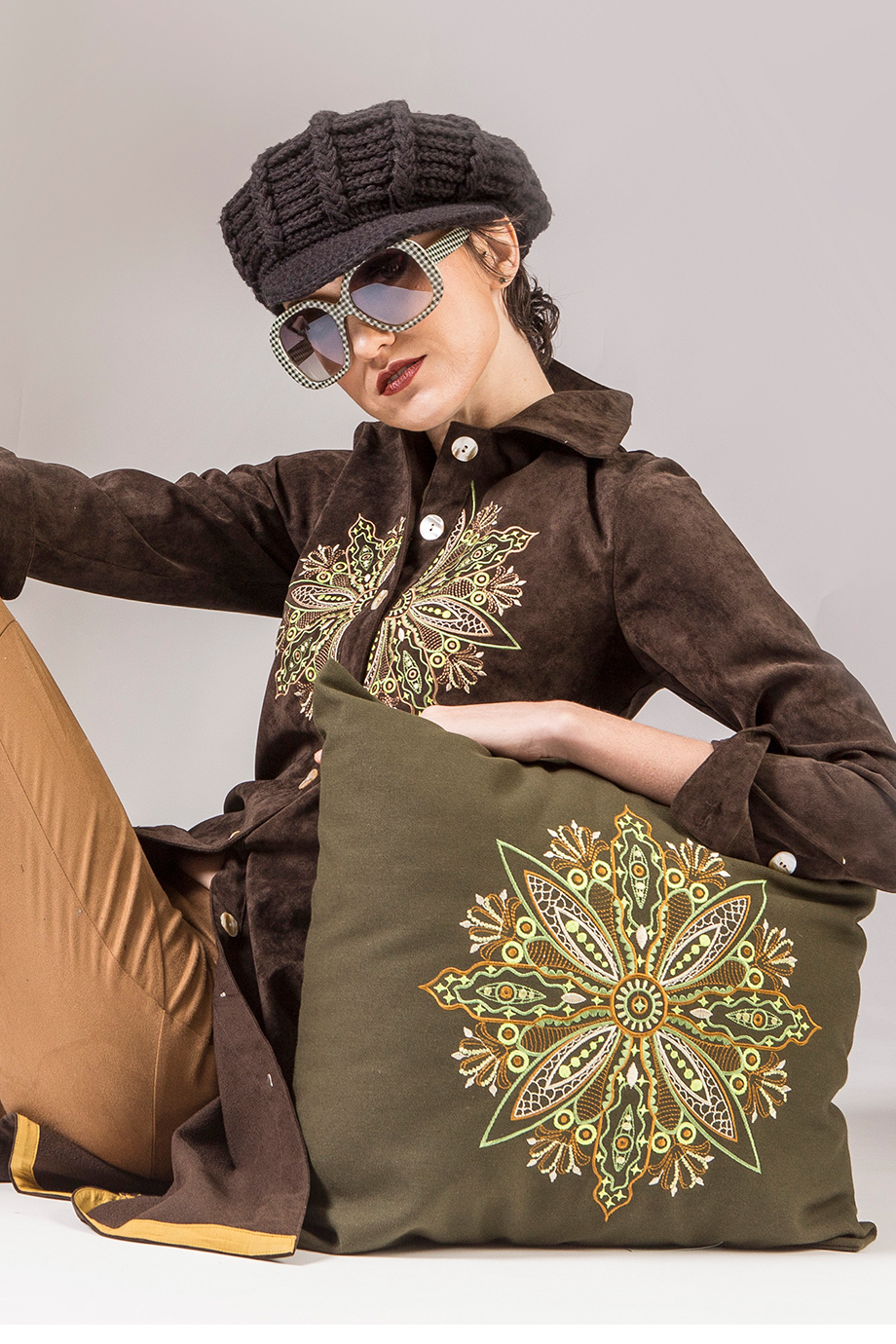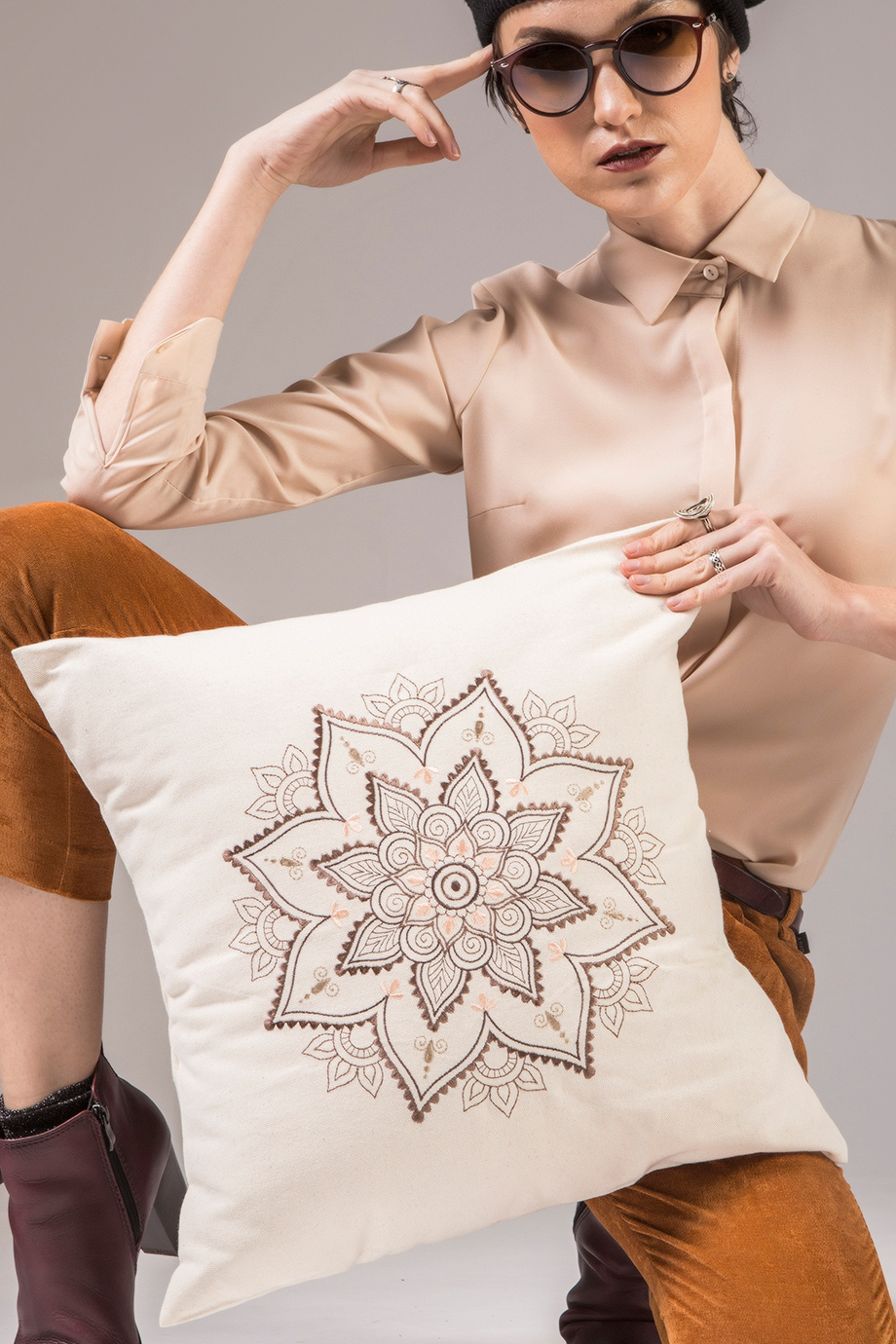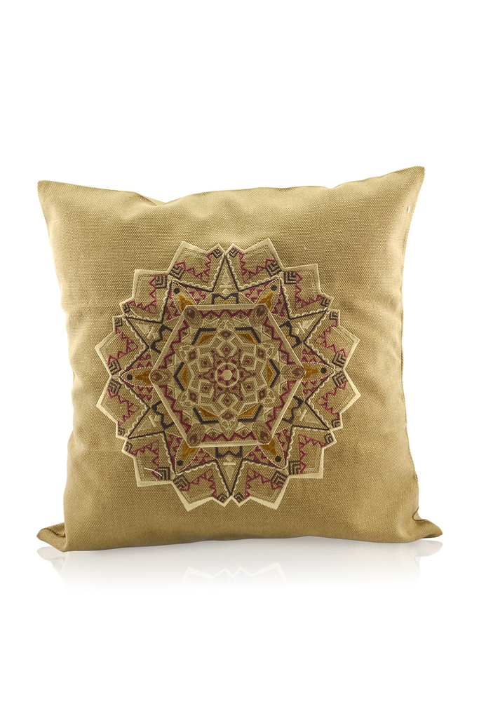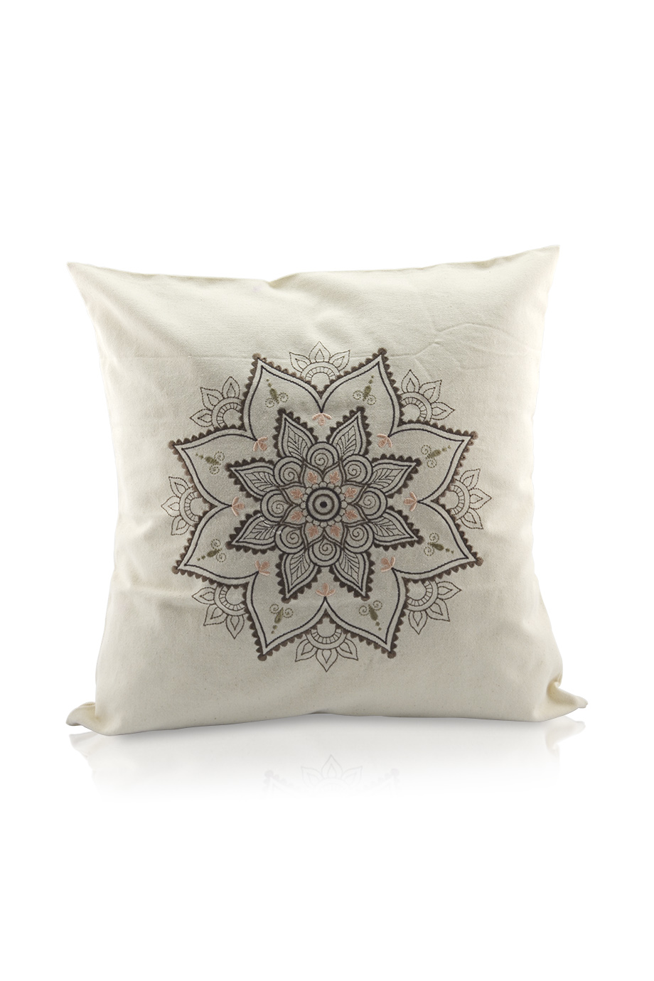 Gối canvas thêu nhồi bông gạo- Earth Mandala Embroidered Pillow Case 48x48/ Sand