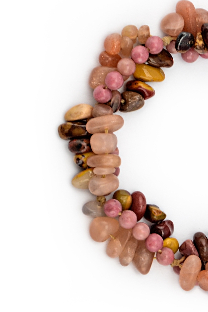 Vòng tay chế tác thủ công từ thạch anh hồng, mã não hồng và jasper lửa, hoàn thiện bằng khóa chữ S cỡ lớn đi kèm với logo GISY bạc 925 hình hoa tulip đặc trưng. Chiều dài 18.7cm. Bạn có thể điều chỉnh độ dài tới 21cm mà giá vẫn giữ nguyên.
