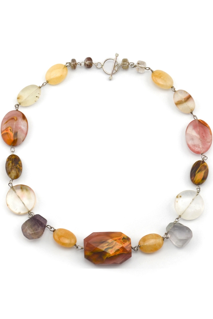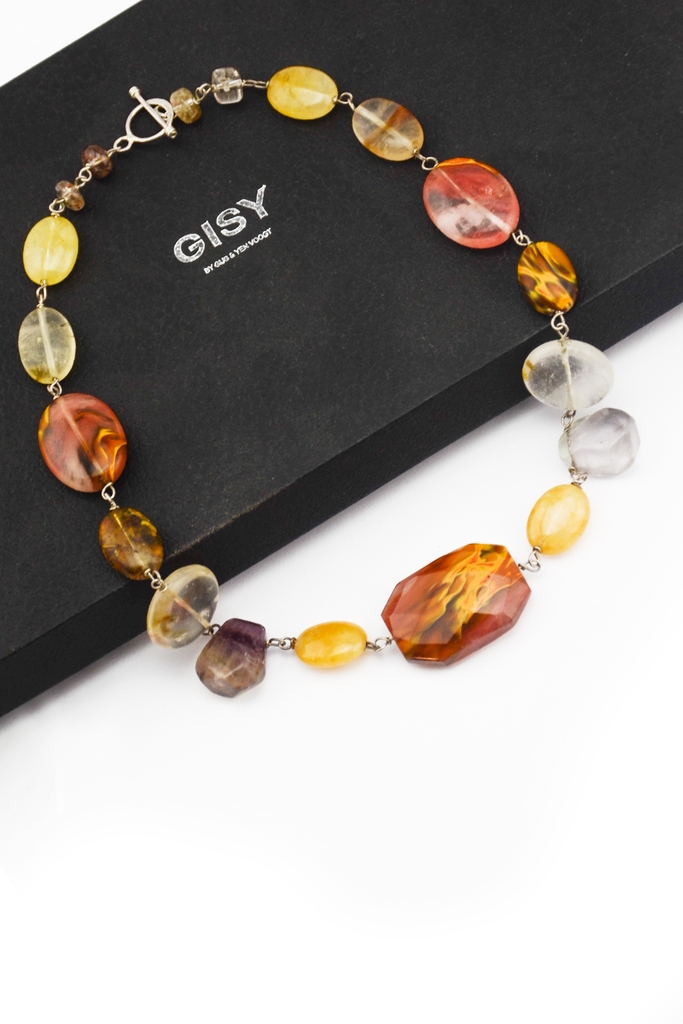 43,5 cm, cachedony, flourite, citrine, silver wire, silver toggle closure.