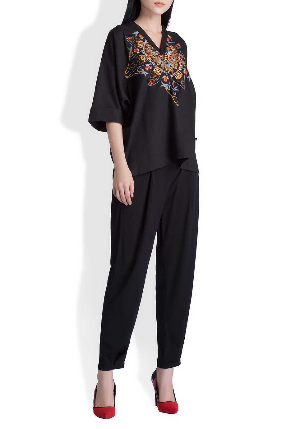 “The man- GIJS VOOGT, 1973, from Breda, the Netherlands, quit his art school to become a sailor and the woman- Tran Thi Hai Yen (YEN VOOGT), 1984, from Hanoi, Vietnam, quit her diplomacy & journalism school to become a fashion designer. They met in 2009 and set up the brand GISY in 2011, same year with their marriage. GISY (which stands for "Gijs IS Yen") is a real combination of cultures and "can be lack of everything but not authenticity".
