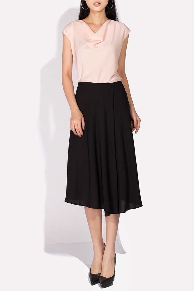 - Chân váy độ dài midi với tùng váy xép vải rủ tự nhiên mang tới vẻ thanh lịch, thướt tha tự nhiên.