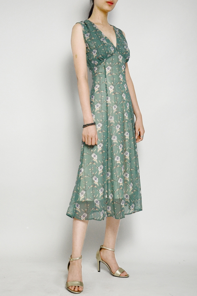 Lót toàn thân. Khóa ẩn bên sườn. Dây buộc sau cổ.
