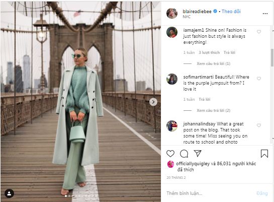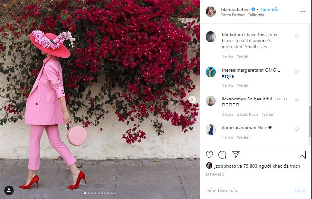 "Tại sao lại phải phối màu thuận mắt, chẳng phải những màu sắc đối lập trông sẽ ấn tượng hơn (dân gian gọi là “nổi” hơn) hay sao?"Hôm nay tôi sẽ trả lời thắc mắc này ngay tại đây: Đúng là những màu đối lập thì bắt mắt hơn, nhưng để duy trì sự hứng thú của người xem trong thời gian dài thì việc “thuận mắt” là tối quan trọng. Nếu bạn quan sát và phân tích kỹ các post của cùng một ngôi sao Instagram, có những post dành được nhiều likes hơn hẳn một số post khác, và các post dành được nhiều sự chú ý này LUÔN đạt tiêu chuẩn về phối đồ đúng phong cách & dải màu phong thủy mượt mà. Để cho dễ hiểu, ta sẽ so sánh hai post sau của @blaireadiebee (tài khoản Instagram này với 1.5 triệu followers):