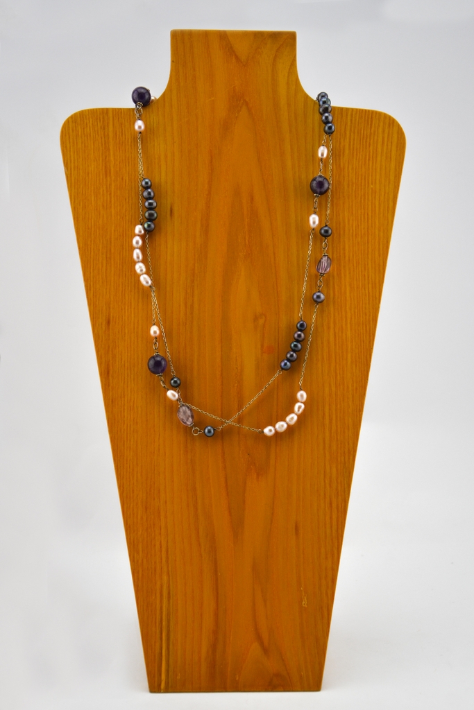 120cm, thạch anh tím sỏi, thạch anh tím tròn 12mm, trai đen ánh, trai hồng