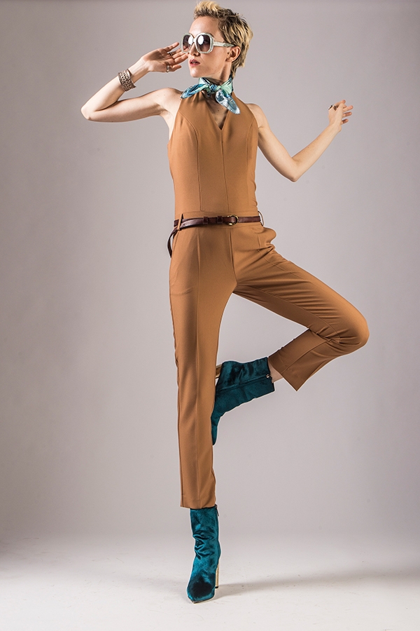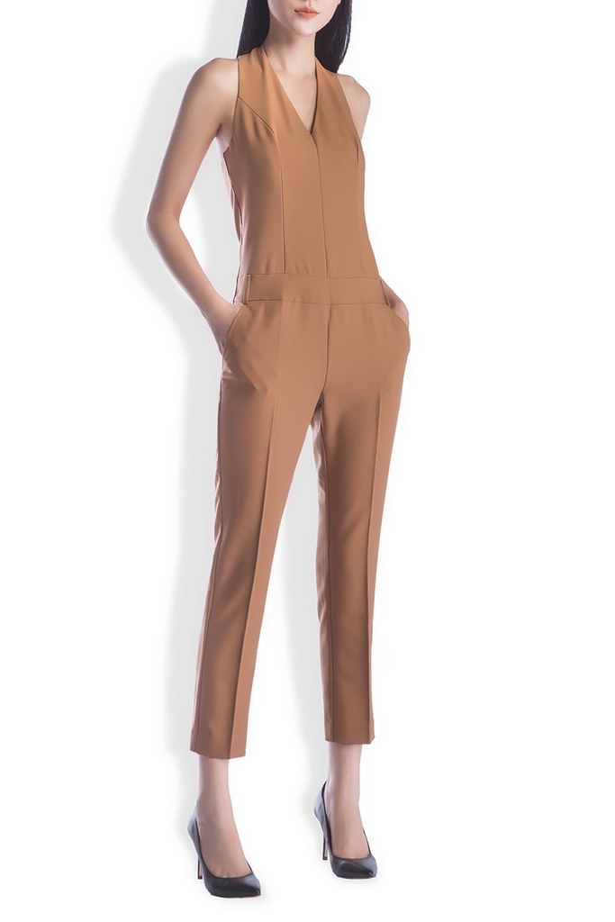 Bộ áo liền quần một dây treo màu be nâu - Louise Halter Jumpsuit/ Cider
