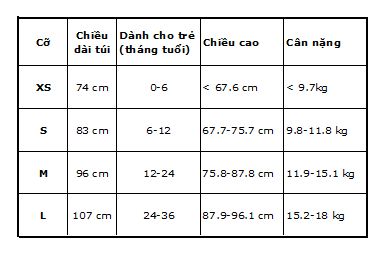 Căn cứ vào tuổi, chiều cao và cân nặng của trẻ, bạn có thể dễ dàng đối chiếu vào bảng dưới đây để chọn được cỡ phù hợp: