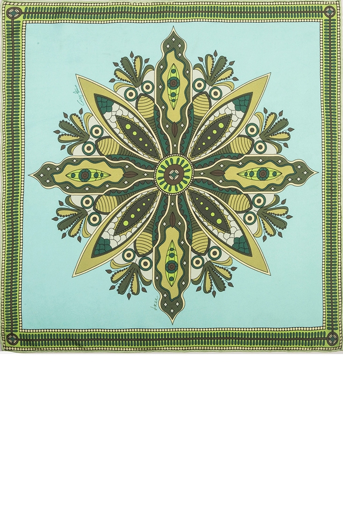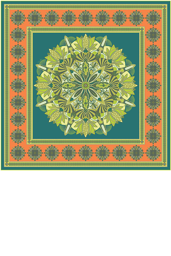 This scarf is made from premium 100% silk twill 14mm with top quality printing job and hand-rolled hem, but the most special thing about it is the pattern: at the center located Mandala TREE (designed by us in 2017, belongs to series 5 Oriental World elements) surrounded with fitted border, gives this scarf a luxury yet boho look.