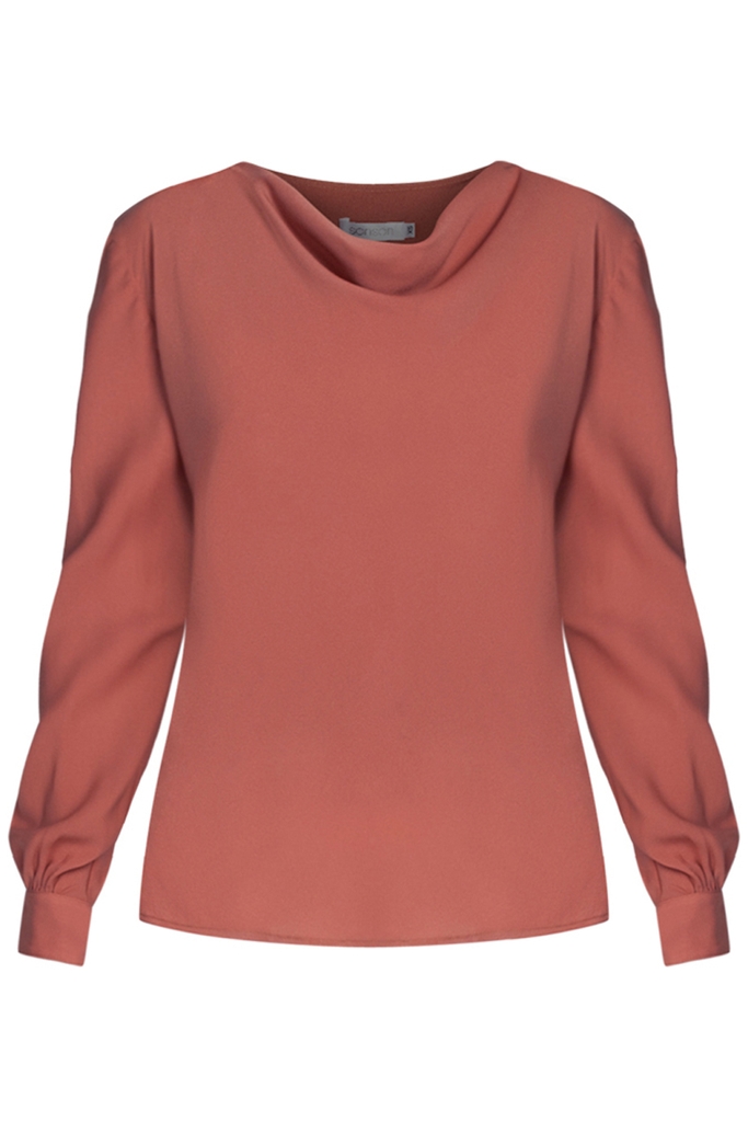 Áo sơ mi cổ đổ tay dài màu cam gạch- Mia Cowl-neck Long-sleeved Blouse/ Brick 2063