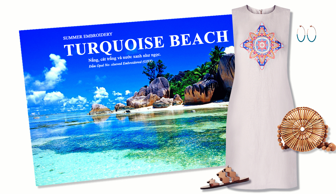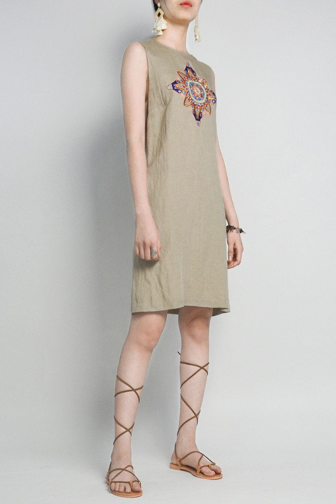Opal No-sleeved Embroidered Shift Dress/ Beige 2125