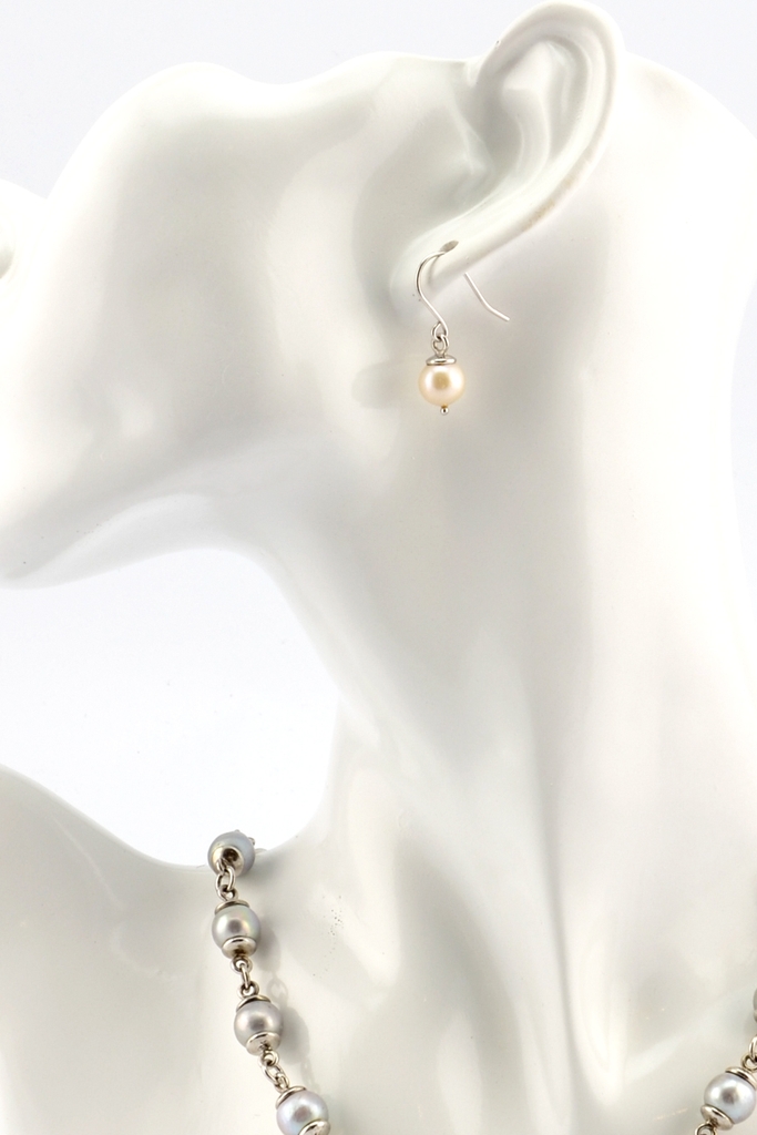 Bông tai móc câu bạc 925 với một viên ngọc trai trắng kem. Một món trang sức cơ bản, sang trọng, nữ tính mà chị em có thể sử dụng hàng ngày.