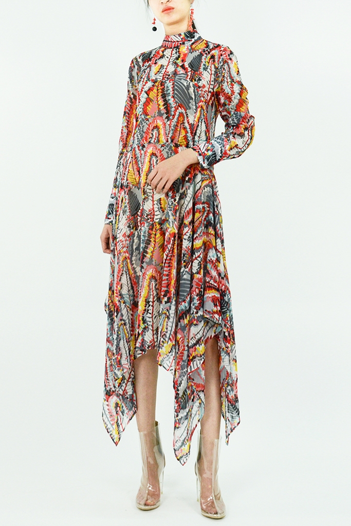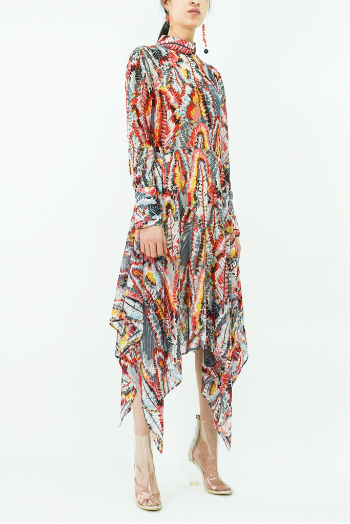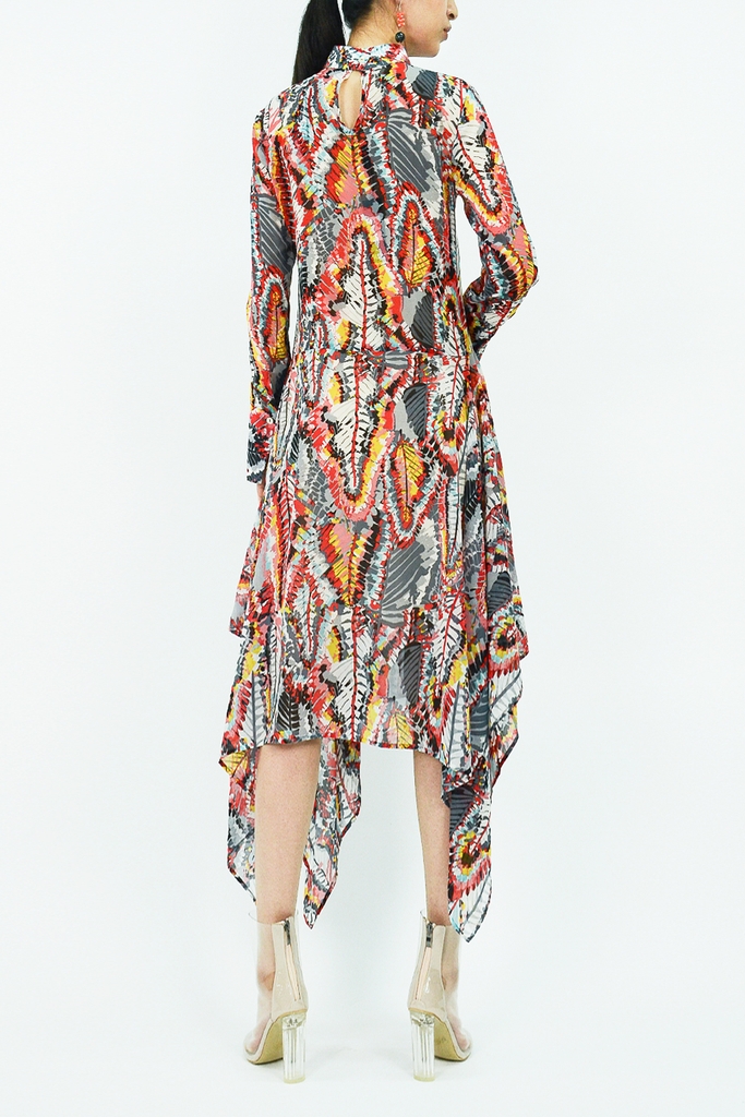 Wolf & Badger: Petra Feather Asymmetric Midi Dress
