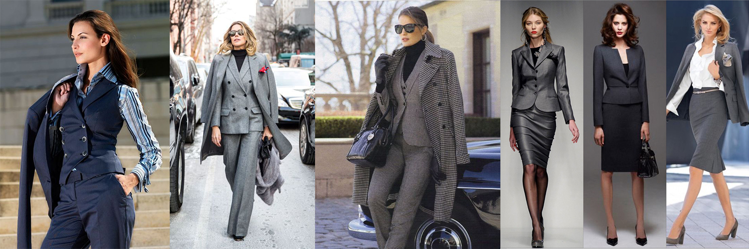 Tối giản với các đường nét cứng cáp. Kín đáo. Vừa vặn nhưng không bó sát. Các món Menswear (trang phục nam) điển hình như áo vest, quần âu, sơ mi, cà vạt. Váy đầm chân bút chì.