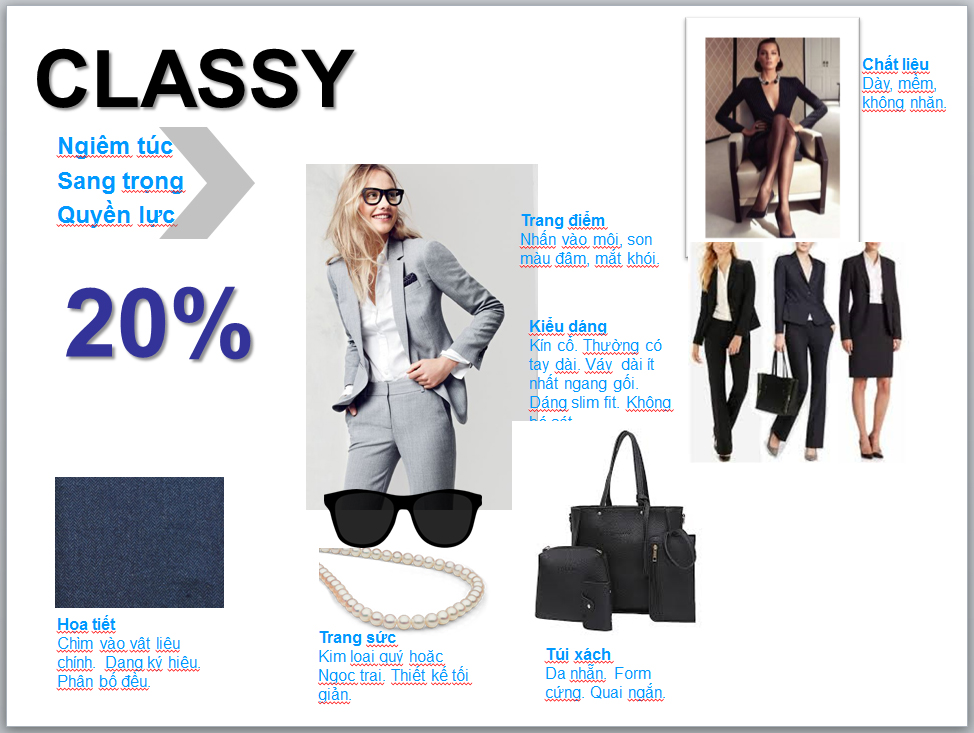 Trang phục CLASSY- Chất liệu, Kiểu dáng và Trang trí