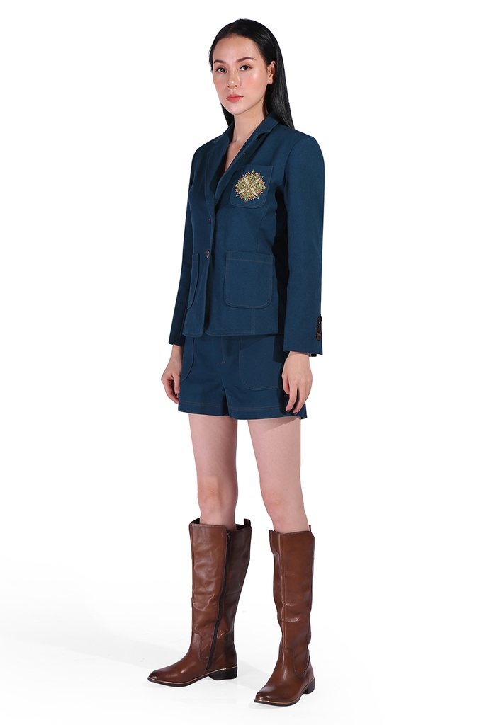 Áo blazer hai khuy thêu mandala Mộc- Brynn Two Button Mandala Embroidered Blazer/ Prussian Blue