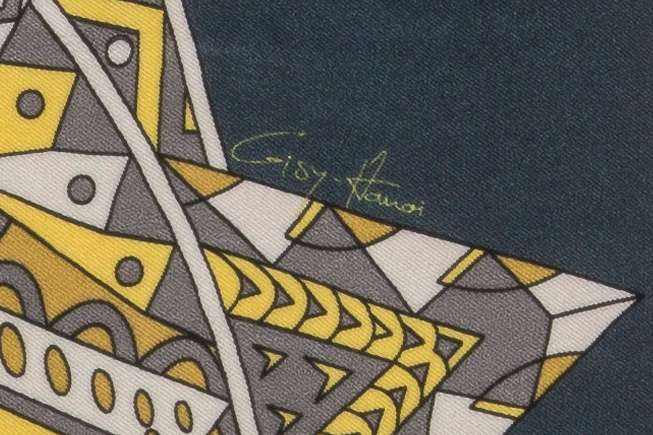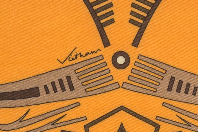 Một chiếc khăn lụa cao cấp phải là một tác phẩm nghệ thuật (bạn có thể căng khung và treo nó lên rồi rọi đèn bởi vì nó chính là một bức tranh theo đúng nghĩa đen.) Họa sĩ luôn ký tên vào tranh của họ đúng không nào?