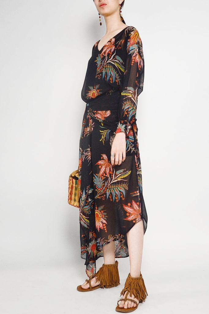 Made from fluid see-though fabric, this dress is perfect choice for the beach over your bikinis as long as day in the city. Wear yours with boho sandals for day and heels for a night out.