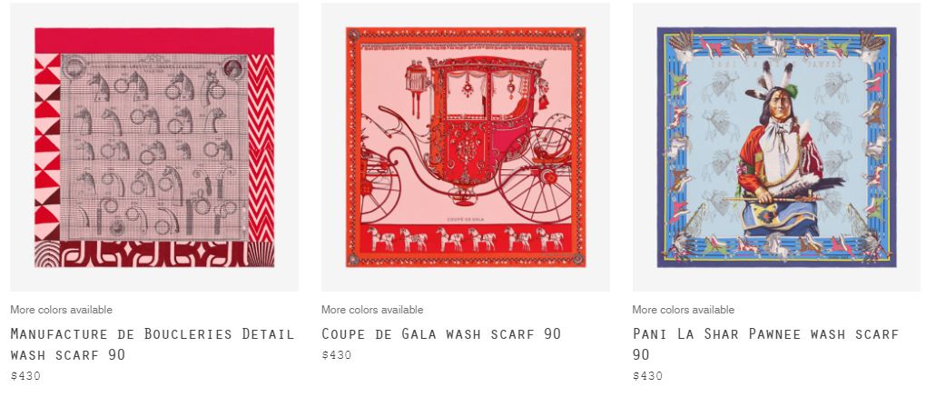 Một chiếc khăn lụa chéo 100% silk twill của Hermes hiện đang được bán với giá 430 USD/ chiếc.