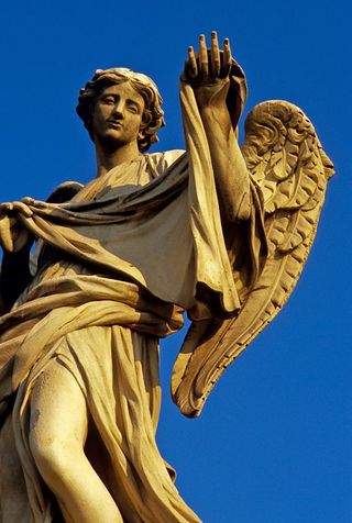 |   Angel with the Sundarium, Ponte Sant'Angelo, Rome, Italy. - Getty Images | The first widely recorded instance of a scarf dates back to 350 BC when Egyptian Queen Nefertiti wore a finely woven style with a headdress. Elsewhere, Roman men in 10 AD tied linen versions called a sudarium (Latin for “sweat cloth”) around their neck or around the waist to wipe away or soak up sweat. In 230 BC, warriors of the Chinese Emperor Cheng wore scarves to denote rank.