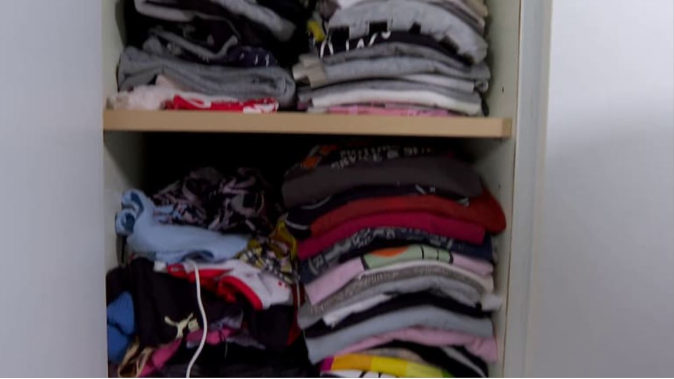 A cupboard filled with clothes from online shops, like Shopee, AliExpress and Shein.com.